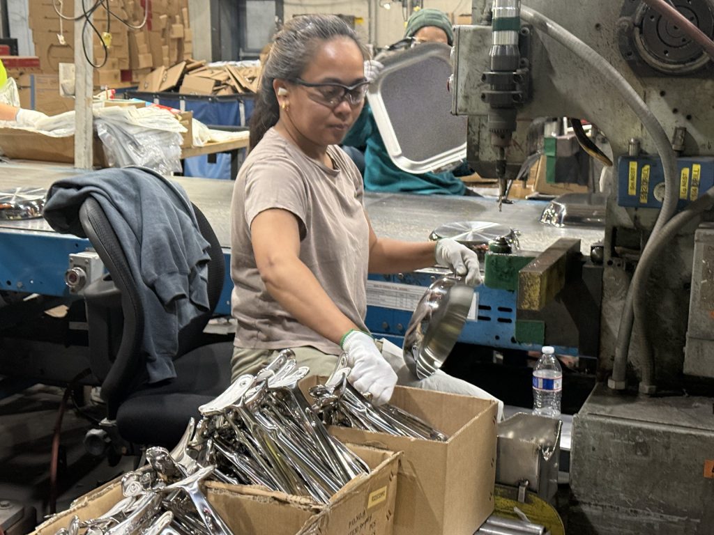 One piece of All-Clad鈥檚 products not produced in the factory are the handles. Those are made in China. At the Cecil Township factory, workers attach the handles to the products as they reach the end of the production line.