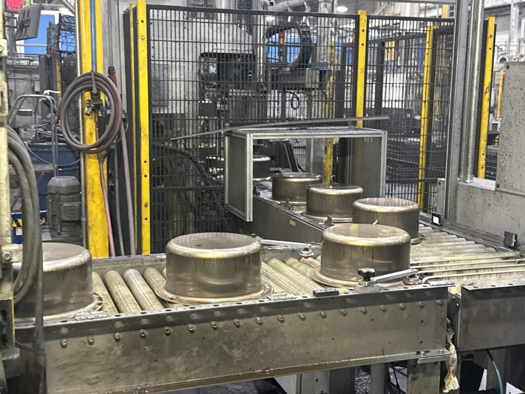 The products are buffed and polished as they continue to move through the factory. Groll explained the cookware is given a coarse finish on the bottom.
