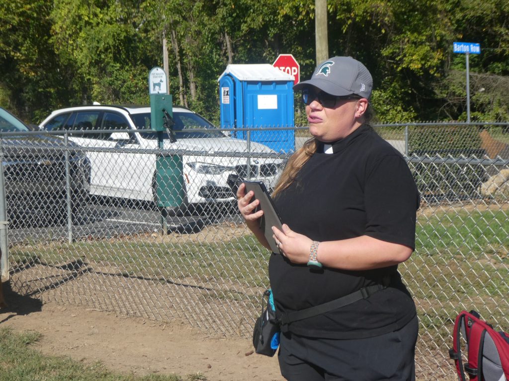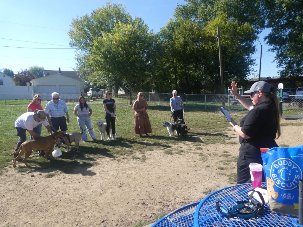 About a dozen dogs were blessed Saturday during a “Blessing of Animals” at Tails of the Trail Dog Park in Uniontown. “We’ve invited dogs from our church and around the community to come and receive a blessing because we know what a blessing our animals are to us,” said the Rev. Laura Blank of Pleasant View Presbyterian Church, who presided over Saturday’s event. “We’re out there to meet the community and make some new friends.” Blank said the blessing was held at the church for several years, but this year it was moved to the dog park. Blank offered a group blessing for the pooches in attendance and then blessed each individually. She also presented the owners with a certificate in the dog’s name. The event is held in conjunction with the feast day of St. Francis of Assisi, the patron saint of animals, who preached about treating animals with kindness and respect. “He was a great lover of animals, so we thought it would be fitting,” Blank said.
