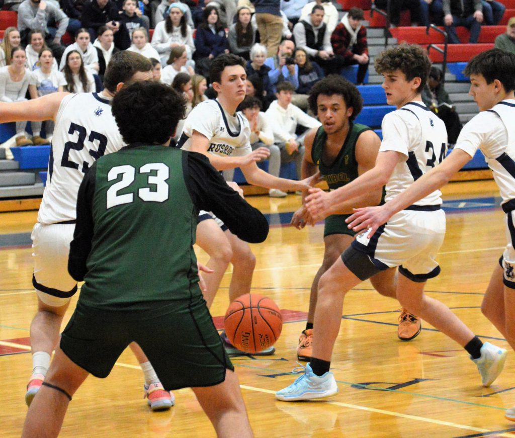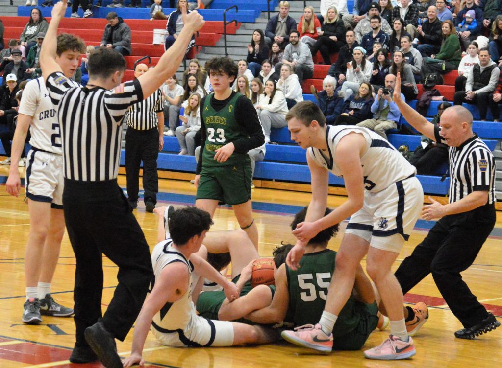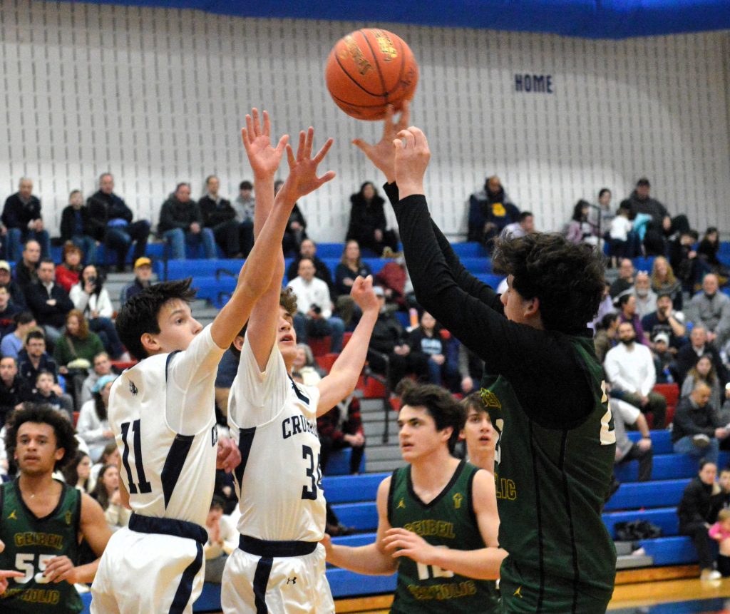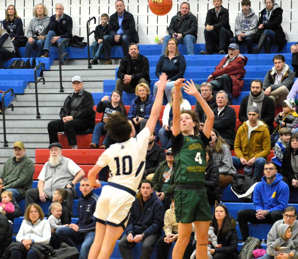 With four players missing from the Gators’ usual rotation, including three starters, senior Roman Riccelli stepped up and led Geibel with 18 points, including three 3-pointers, and junior Seth Dolan added four-3-pointers in tallying 14 points.