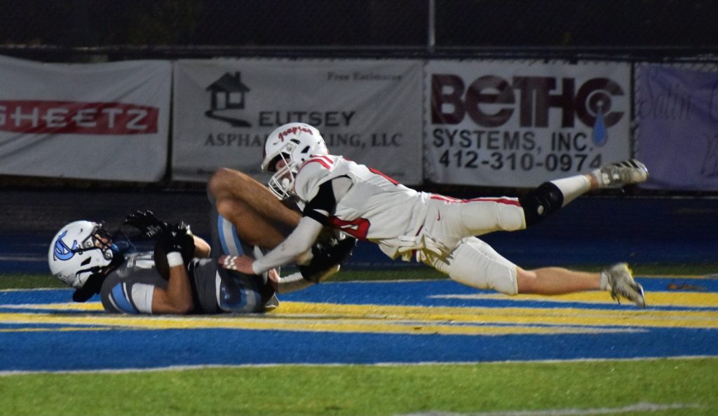 With the Mercy Rule in effect the second half went swiftly with no scoring in the third quarter. Bishop Canevin tacked on its final touchdown on Dominic Cisnero-Torres’ 4-yard run with 9:28 left in the game. The Crusaders; seemingly intent on getting to 50 points, again faked the extra-point kick with Olds throwing a two-point conversion pass to Disnero-Torres.