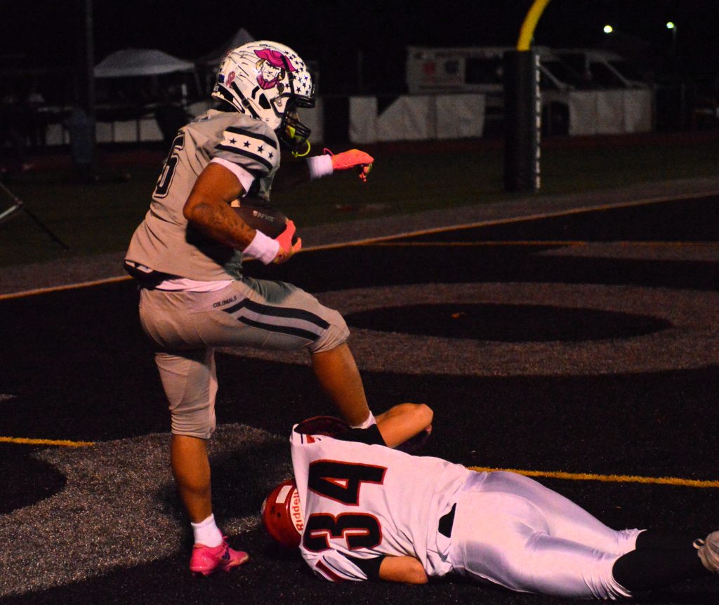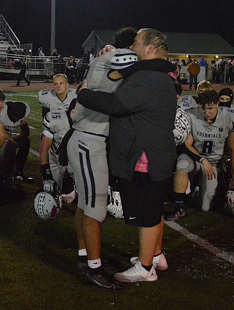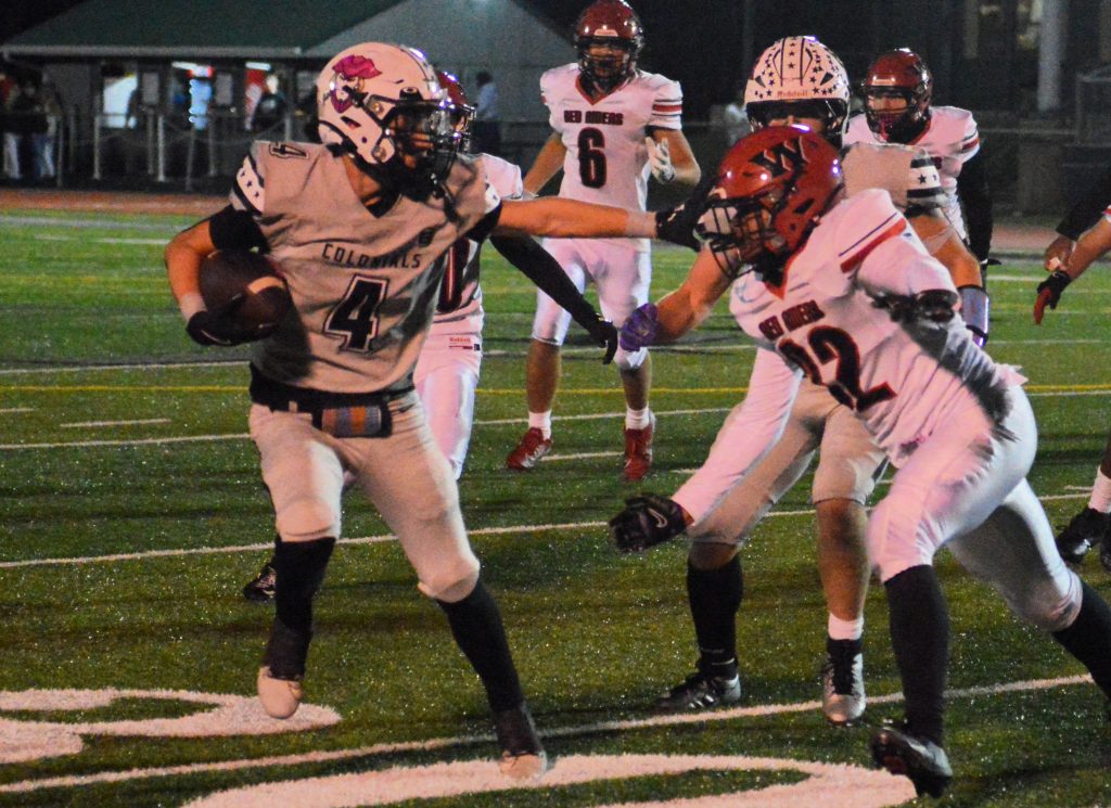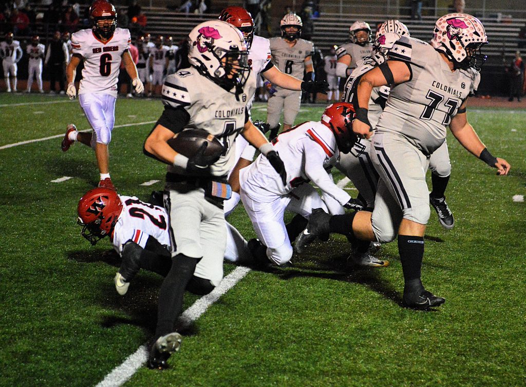 The Colonials went right back to work when the second half began, moving the ball 67 yards in seven plays, including a 27-yard run by Guesman and runs of 19 and 11 yards by Pegg, with Ethan Kennedy finishing up the drive with a 3-yard TD run for a 27-0 lead.