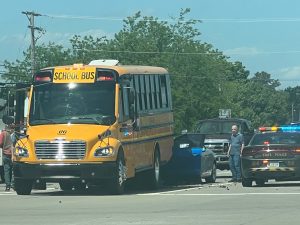 One person was transported to the hospital following a multi-vehicle crash Wednesday involving a school bus in Lemont Furnace.